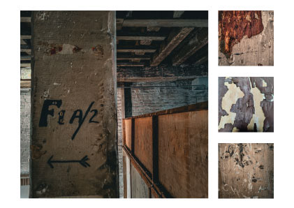 To solidify my idea, I used photographs I had previously taken of the walls inside Storehouse 9 and cropped them to create mock-ups of the idea. This allowed me to finalise a format to showcase the final photographs and know exactly what to take pictures of when I returned to Storehouse 9. Since I was limited to the pictures I had already taken, it was difficult to find unique textures for the mocks. I knew when I returned to the Storehouse I would need to look for more textures to ensure there was more variety in my final outcome.